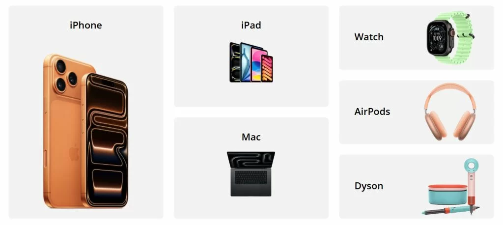 Apple-экосистема сильна именно связкой устройств: iPhone + Apple Watch + AirPods, Mac + iPad, iCloud и бесшовная синхронизация. Поэтому важно, чтобы в одном месте можно было собрать комплект под себя — от флагманских моделей до более доступных решений.