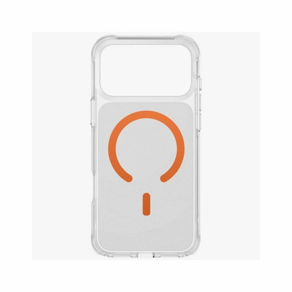 Лёгкий и надёжный аксессуар, идеально адаптированный к формам iPhone 17 Pro Max: MagSafe обеспечивает мгновенную и стабильную фиксацию, а продуманная многослойная конструкция бережно гасит удары и царапины. Внутренняя мягкая подкладка заботится о корпусе, а оттенок Clear/Volt Orange добавляет глубину цвета и приятные тактильные ощущения при каждом касании. Сохранён свободный доступ к камерам и элементам управления, а беспроводная зарядка работает без необходимости снимать аксессуар — всё для вашего смартфона и удобства использования.
