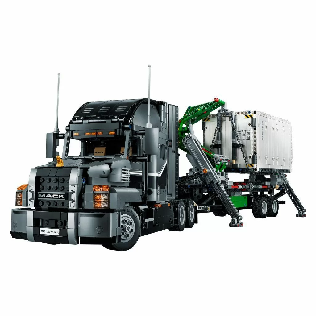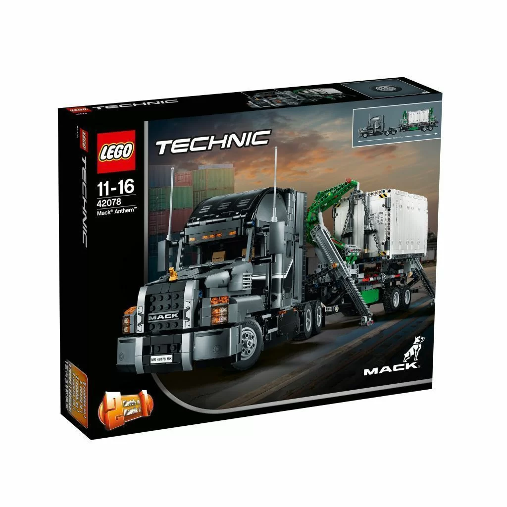 Получи истинное удовольствие и инновационный опыт сборки с помощью этой исключительной копии грузовика MACK Anthem 2 в 1 от LEGO® Technic. Эта тщательно проработанная модель, созданная в сотрудничестве с MACK® Trucks Inc., имеет множество реалистичных деталей и функций. Открой двери и увидишь оборудованную кабину водителя с приборной панелью, рулевым колесом, солнцезащитными шторками, регулируемыми сиденьями и спальным местом, а под капотом ты обнаружишь прямой 6-целиндровый двигатель с движущимися поршнями и вращающимся вентилятором радиатора. Ты можешь перевезти грузовик на место проведения работ, опустить стойки, выдвинуть и закрепить выносные опоры и управлять синхронизированными стрелами крана для установки контейнера на прицеп, который можно отцепить. А когда будешь готов к новой задаче, эту модель можно перестроить в мусоровоз MACK LR, который отличается множеством аутентичных деталей.