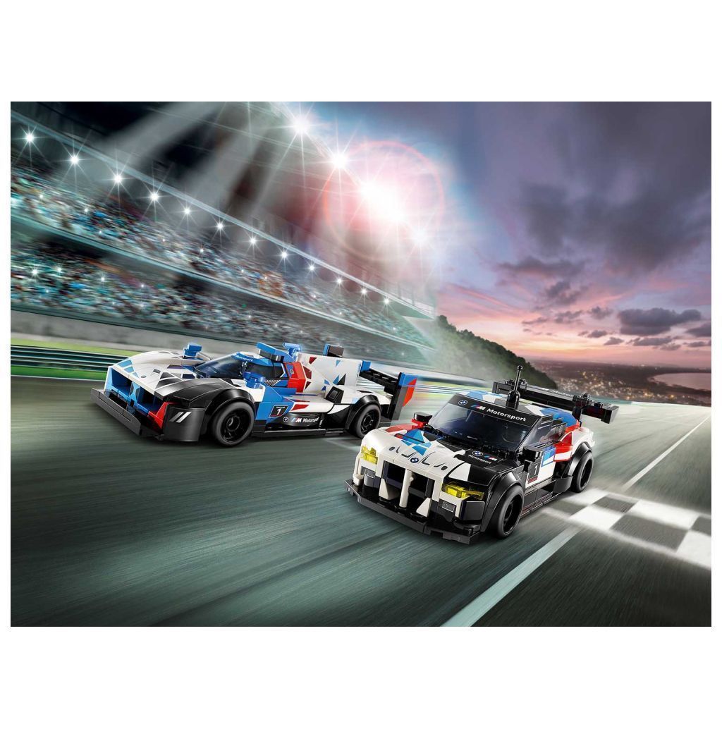 • 2 игрушечных автомобиля BMW для детей — гоночные машины LEGO® Speed Champions BMW M4 GT3 и BMW M Hybrid V8 для мальчиков и девочек в возрасте от 9 лет и взрослых коллекционеров моделей автомобилей.
