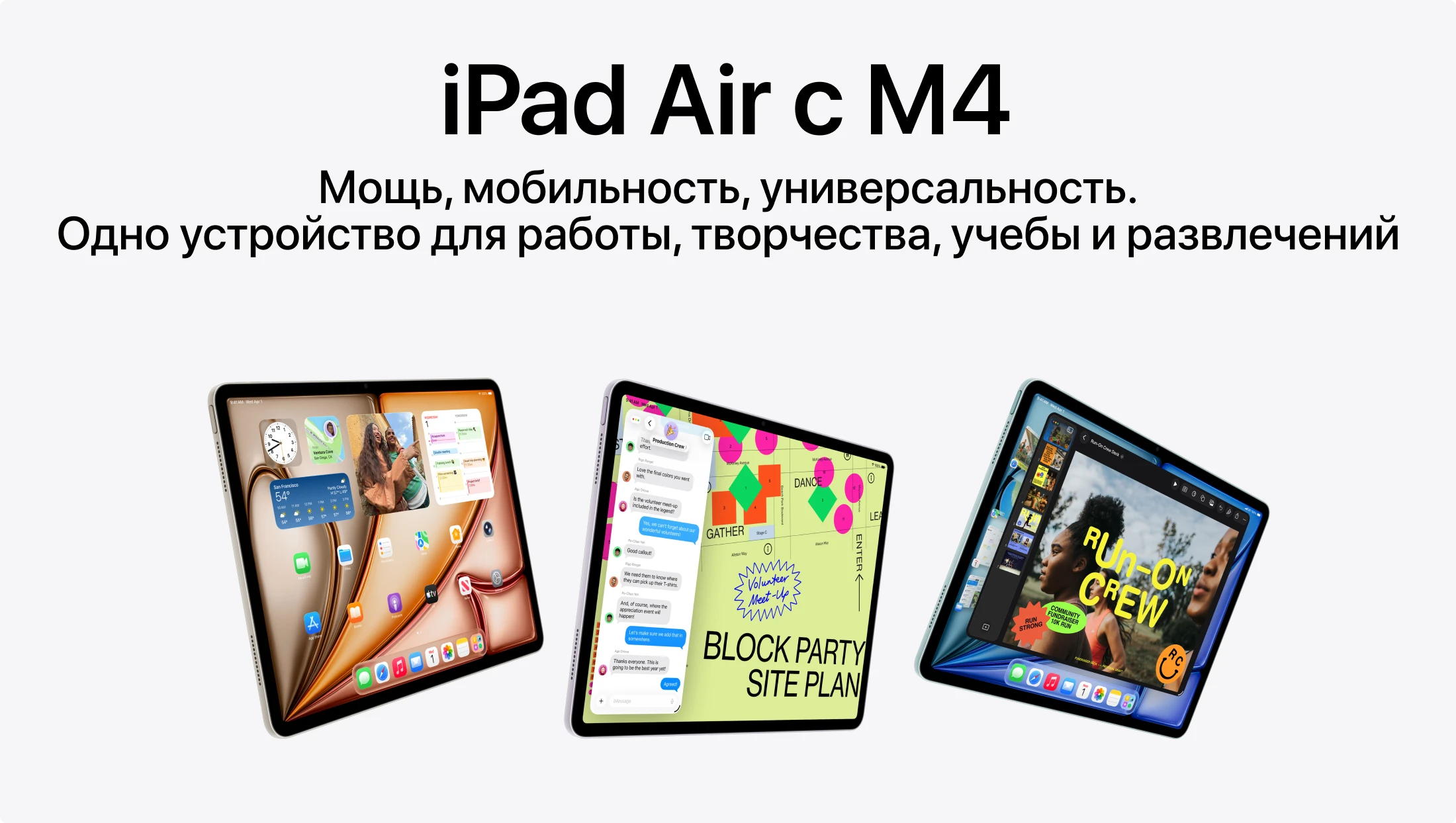 iPad Air всегда занимал особое место в линейке Apple: не базовый и не Pro, а точная середина — планшет, в котором мощность не приносится в жертву цене. С переходом на чип M4 эта позиция стала ещё убедительнее. Производительность, которая раньше требовала доплаты за Pro, теперь доступна по более низкой цене.