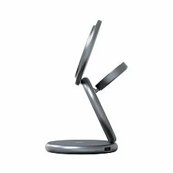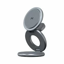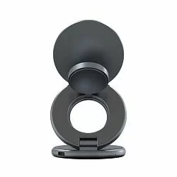 • Магнитное крепление: оснащено мощными магнитами класса N52 для надежной фиксации устройств и точного позиционирования для оптимального заряда, с возможностью регулировки угла наклона.