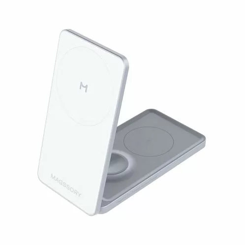 Беспроводное зарядное устройство Magssory Flip 3 в 1, складной, серебро