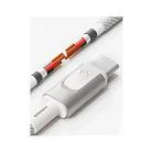 Надёжный и прочный кабель в нейлоновой оплётке с коннекторами из цинкового сплава. Поддерживает быструю зарядку Power Delivery до 100 Вт (20V/5A) и передачу данных до 480 Мбит/с. Не ломается на сгибах, устойчив к износу. Совместим со всеми устройствами с разъёмом Type-C: ноутбуками, смартфонами, планшетами. Длина — 120 см. В комплекте — удобный ремешок из эко-кожи для хранения.