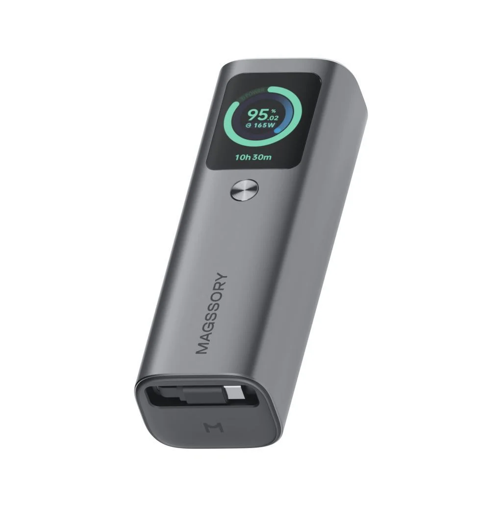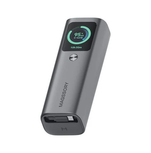 Magssory Gear 20K 165W — это премиальный внешний аккумулятор, созданный для энергоемких ноутбуков и современных гаджетов. Главная особенность модели — встроенный кабель USB-C длиной 55 см с механизмом автоматической смотки, который убирается внутрь корпуса, избавляя от лишних проводов.