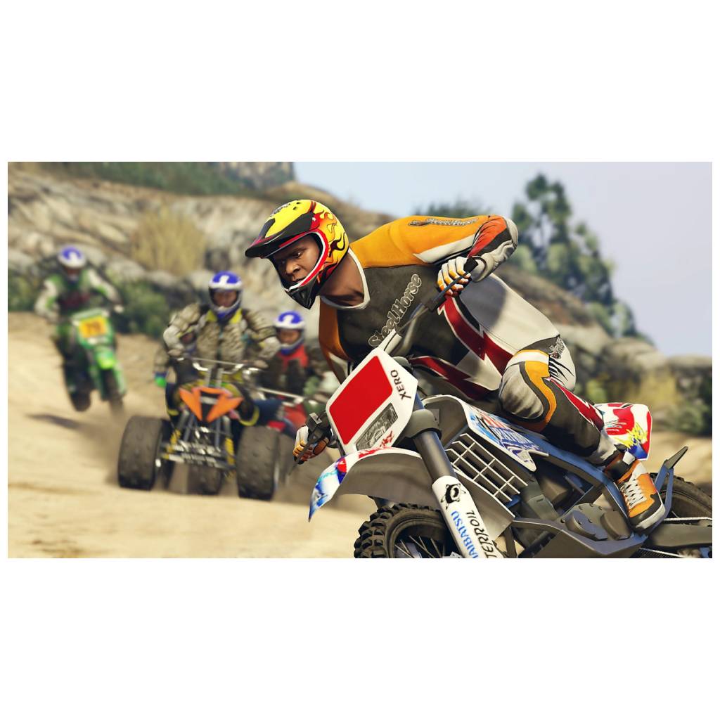 Окунитесь в популярные хиты Grand Theft Auto V и GTA Online с улучшениями для PlayStation 5, в числе которых потрясающая графика, быстрая загрузка сцен, адаптивные триггеры, тактильная отдача, технология Tempest 3D audio и многое другое, а также эксклюзивные материалы для GTA Online.