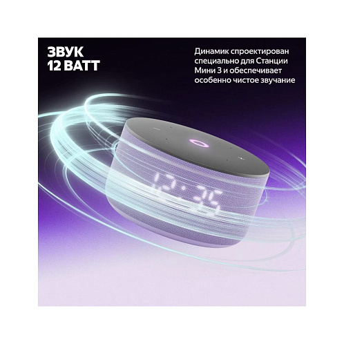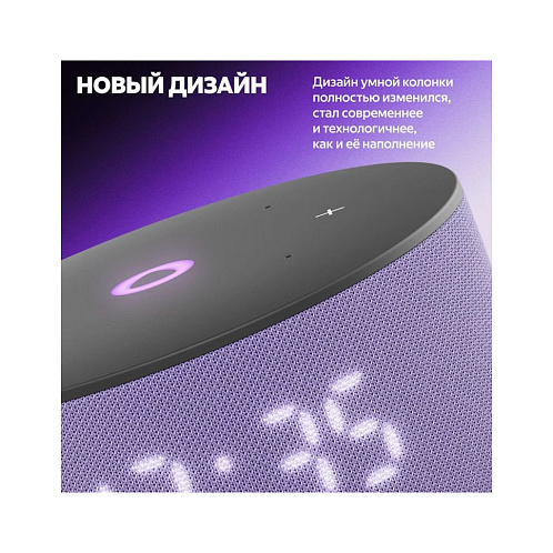 Благодаря более мягкой, цельной и гармоничной форме корпуса Станция Мини 3 отлично смотрится в любом современном интерьере. Цветовая палитра умной колонки тоже обновилась: можно выбрать классические чёрный и серый, а для ценителей акцентов подойдёт пастельный фиолетовый оттенок.