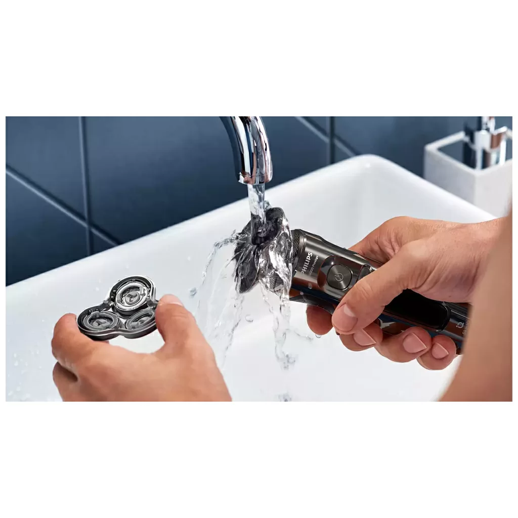 Бритвенные головки Philips S9000 Prestige оснащены специальным защитным покрытием SkinGlide, которое улучшает скольжение, снижая трение о кожу, и минимизирует риск раздражения.